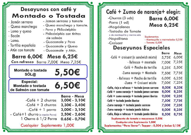 AMPLIA CARTA DE RACIONES, MONTADOS BOCADILLOS, MERIENDAS....