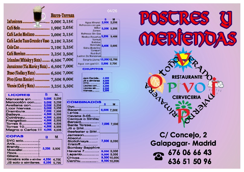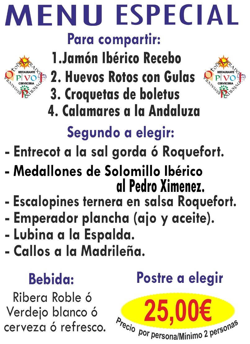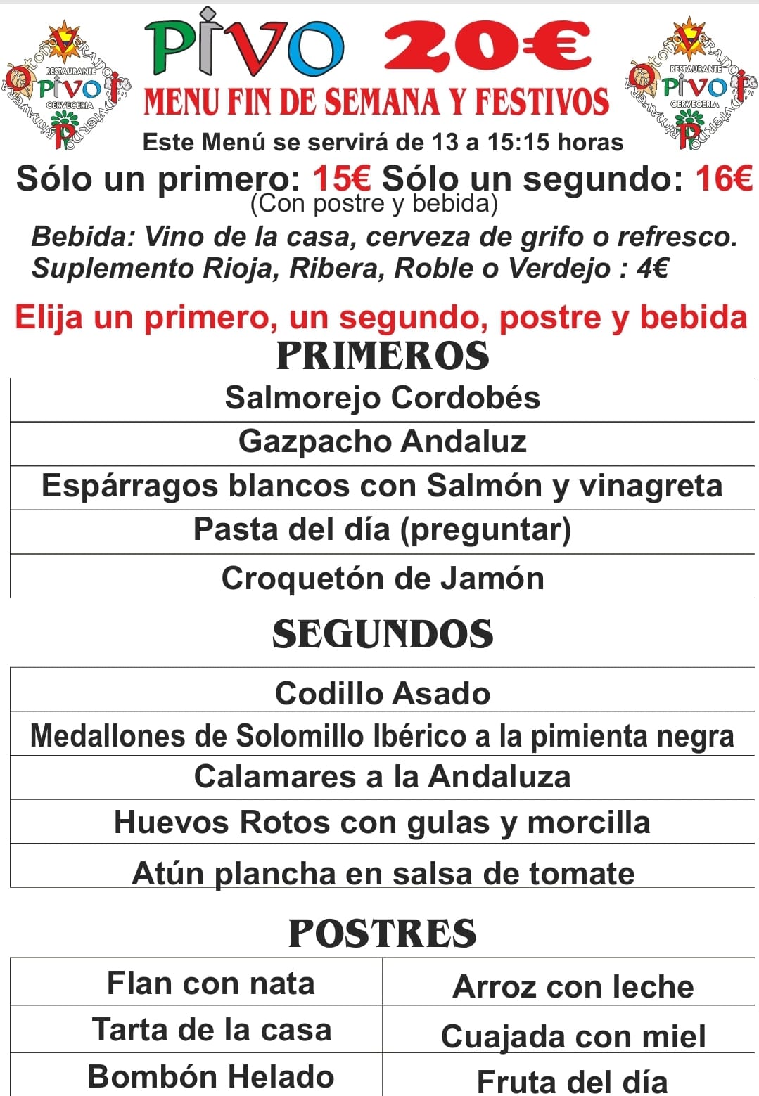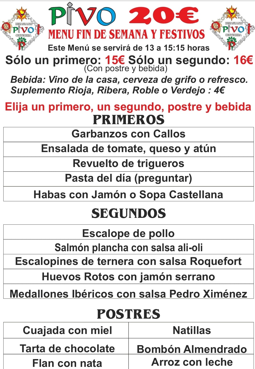 MENU DIARIO, MENU ESPECIAL Y MENU DE FIN DE SEMANA